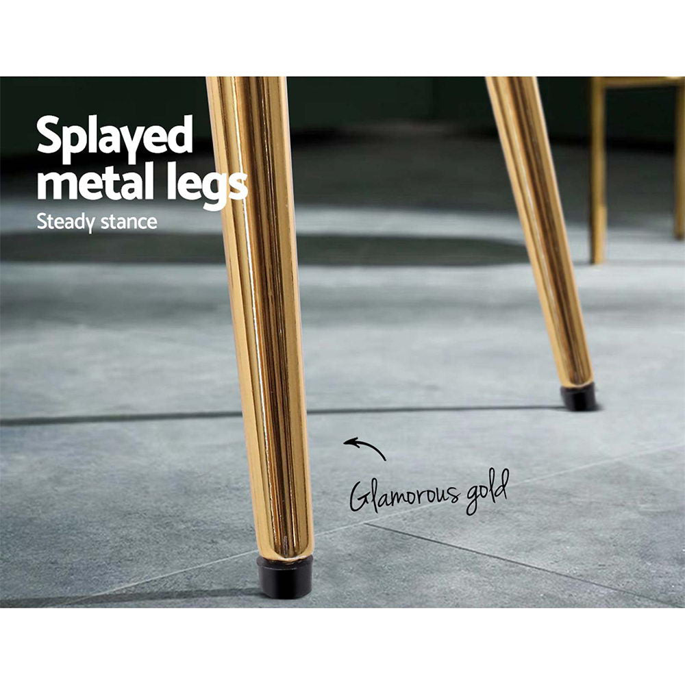 Iconic design Timeless appeal. Our Artiss Armchair is the epitome of trendsetting style designed for the bold and passionate. With its thick padding of high resilience foam and velvet fabric upholstery, the armchair is perfect as a reading chair or a favourite relaxation seat. The vintage-style scallop shell back wraps around and hugs your body to provide perfect support and comfort. The splayed metal legs in glamorous gold give the armchair loads of character as well as providing a very stable base. Not least, the workmanship is meticulous with the fluid corners and sturdy wooden frame. The armchair will blend well with any setting from classic to contemporary and will also soften the flow of rooms with angular furniture and accents.